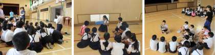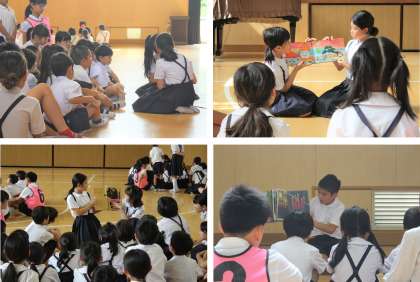 朝の児童集会で、図書委員会による読み聞かせがありました。