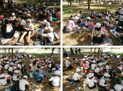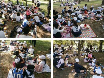 縦割り班で楽しくお話をしながら昼食をとった後は、広い場所で遊んだり、運動したりして楽しむことができました。