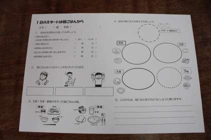 朝ご飯には頭をすっきりさせる働き、排便を促す働き、体温を上げる働きの三つの働きがあることを知り、自分の朝ご飯の献立を考えました。学校で元気に過ごすためにも、朝ご飯は大切です。今日学んだことを振り返り、日々の生活に生かしてほしいと思います。