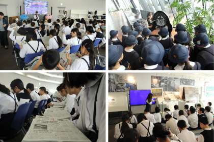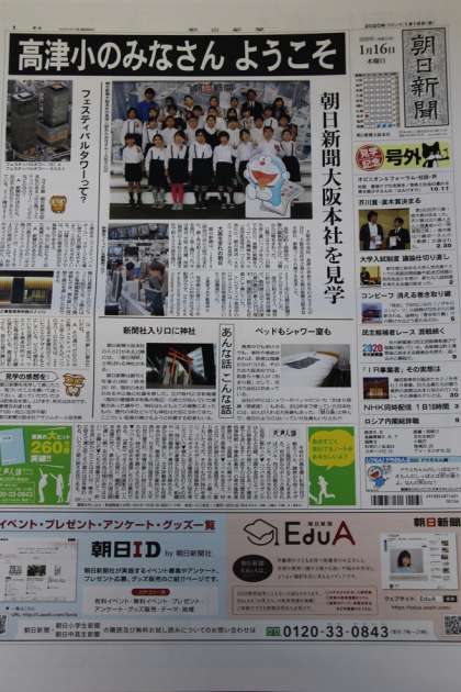 5年社会見学(朝日新聞社)がありました。新聞の歴史や取材、作成等について実際の見学や映像により詳しく教えていただきました。児童は説明を熱心に聴き記録し、真剣な表情での社会見学でした。見学の中で、自分たちの写真が入った特別版の新聞を作っているところを見せていただき、完成したものをお土産にいただきました。