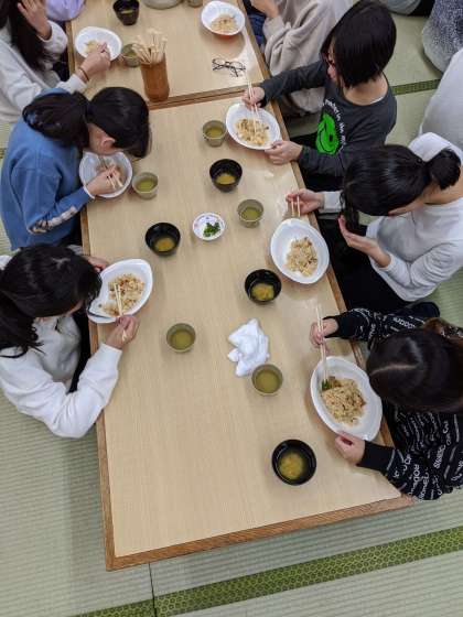 スキー教室を終え、宿舎での最後の食事(炊き込みご飯)をいただき、閉舎式をしました。もう間もなく宿舎をあとにして、バスに乗り大阪に帰ります。