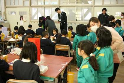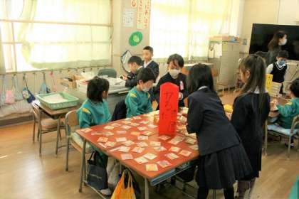 来年度一年生になる子どもたちがつばな保育園から高津小学校へ授業参観に来てくれました。1年生の国語の授業を見たあと、一緒にかるたや、どんぐりで作ったけんだまで遊びました。最後はみんなで「パプリカ」を踊り、楽しく過ごしました。