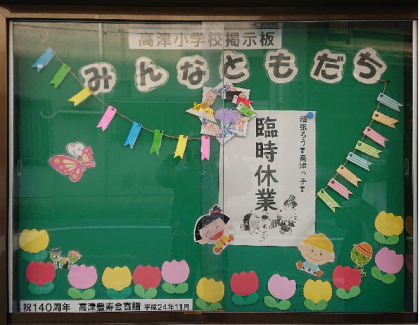 今(いま)、みんなでがんばっていることが実(みの)るように、もうひと辛抱(しんぼう)。健康(けんこう)には十分(じゅうぶん)気(き)をつけて、すごしてくださいね。 みなさんに出会(であ)える日(ひ)が一日(いちにち)も早(はや)く来(く)ることを願(ねが)っています。その時(とき)には、いっぱいの笑顔(えがお)を見(み)せてくださいね! (校長より)