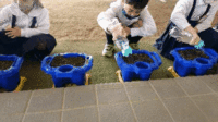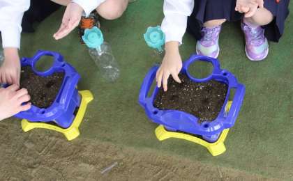さっそく、自分の植木鉢に朝顔の種を植えました。