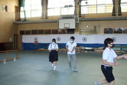 ペットボトルを使った足の練習から再スタートです。基本の姿勢を大切にしながら練習しました。その後主遣いを桐竹勘十郎先生に、左遣いを桐竹勘次郎先生にしていただき、文ちゃん人形で歩いたり、正座をしたりしました。