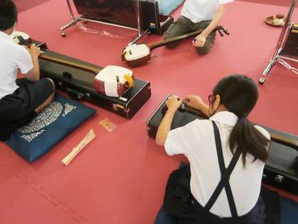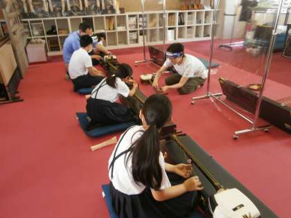鶴澤清馗先生と鶴澤清公先生が来てくださり、弦の交換の仕方、バチさばきを丁寧に教えていただきました。臨時休業の間ずっと弾きたかった三味線にやっとさわることができて本当にうれしいです。
