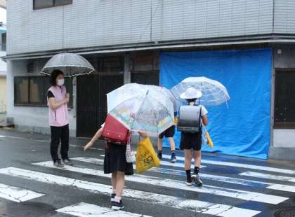 5月の登校日から、毎日多くの方々に登下校の様子をを見守っていただき、本当にありがとうございます。今日も雨の中、子どもたちのさそい合わせ登校に付き添っていただくなど、ご協力いただきありがとうございました。