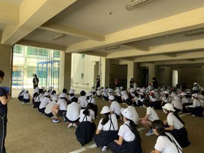 正しい非難の仕方を身に付けるために、避難訓練を実施しました。