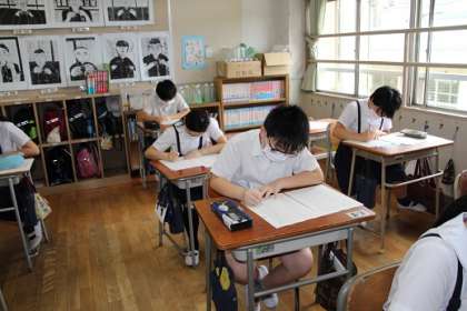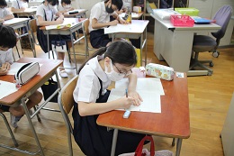 鉛筆の音が聞こえてきそうなくらい集中しています。6年生になると、教科書の文章も難しくなってきますが、視写を通して語彙を増やすことで、日々の学習の理解への効果を期待しながら取り組んでいます。