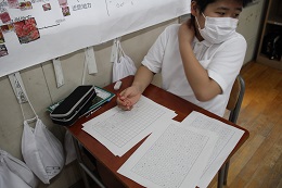 「言葉のまとまりを意識して、自分の速さで、正確」にというめあてのもと、視写に取り組んでいます。毎回、10分間で何文字書くことができたか、また正確さはどうだったかを確認しています。回を重ねるごとに確実にパワーアップしています。昨年度の終わりに外国から編入してきた友達もがんばっています。