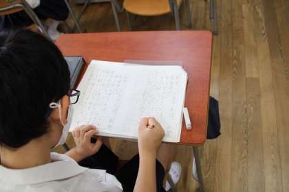 集中して取り組んでいるのはもちろんのこと、6学年の中で1番姿勢良く視写をしていました。