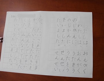 臨時休業中に頑張ったひらがなのお稽古の成果が感じられました。
