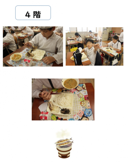 各階の給食の様子をのぞいてみるとどの階もいつもと違ってシーンとしていました。