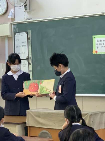 図書委員が各クラスに行って絵本の読み聞かせをしてくれました。