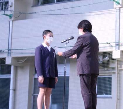 今年度優勝したのは、9班でした。班長の吉田美薫さんが代表して表彰を受けました。