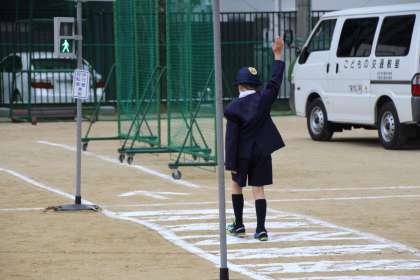 左右をしっかりかくにんして、車が来ていないか確認する練習をしました。