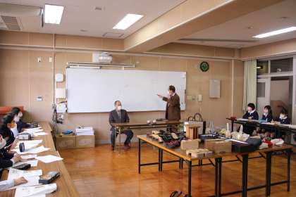 御蔵跡で働いていらっしゃる地域の方を講師としてお招きし、大阪市の伝統ある産業について学習しました。