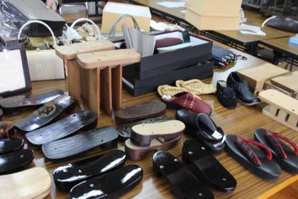 まず、履物の製造工程や種類の解説、材料の説明を分かりやすい実演を交えながら、説明していただきました。