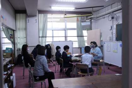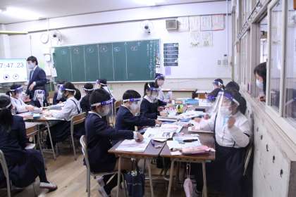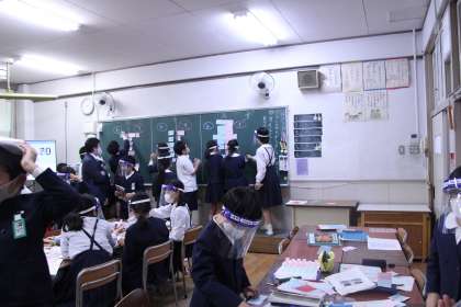 青の付箋には「和食」を赤の付箋には「洋食」を書き出し、「衣・食・住」の中の「食」について考え、学級全体で交流しました。