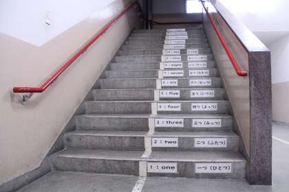 毎日給食のたびに使用しているうちに、知らず知らずのうちに汚れていた階段が…。