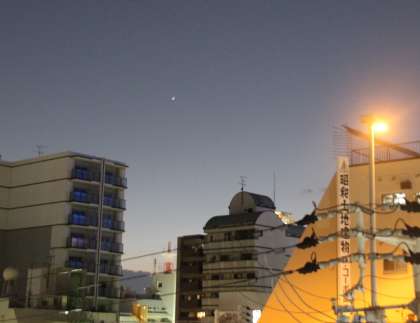 肉眼では、土星が小さくて一つの星ににじんで見えるのですが、よく見ると木星のそばに小さく寄り添う土星を見つけました。
