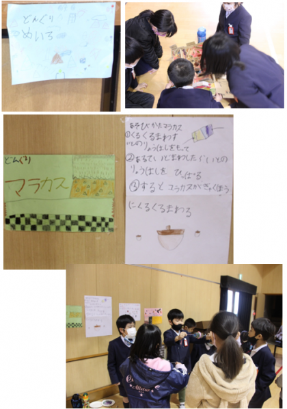 段ボールで作った迷路のゴールを目指してドングリを転がします。上下左右に段ボールを傾けながら必死でした。