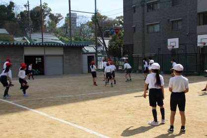 今日は、6年生と3年生の混合チームで、紅白に分かれて、ドッヂボール大会を行いました。3年生も6年生も、楽しい1時間を過ごすことができました。