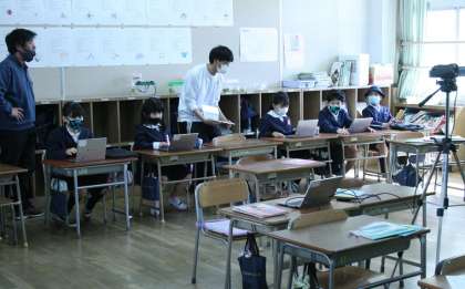 8時50分から、Teamsによる朝の会を3〜6年生で実施しました。
