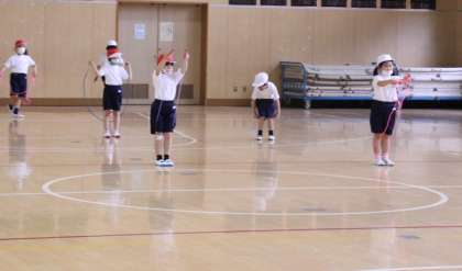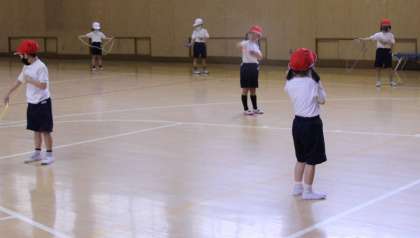 縄跳びを腕に巻き付けたり、ほどいたり。