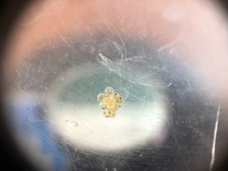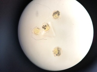 今朝見てみると、卵のなかの「小さなつぶつぶ」がなくなって、メダカの形ができてきていました。小さな心臓も、動いている様子がわかります。