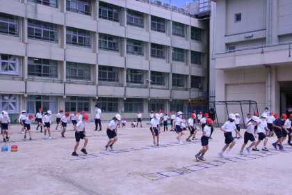 3・4年生の様子です。スキップ動作やラダーを使ったトレーニングを行い、速く走るポイントについて指導していただきました。