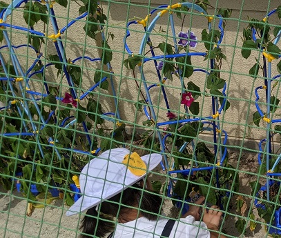 ついに、大きな花がたくさん見られるようになりました。赤、青、紫など、色鮮やかに咲いています。まだまだつぼみも残っているので、これからも楽しみです。