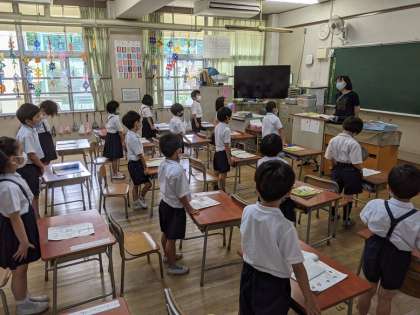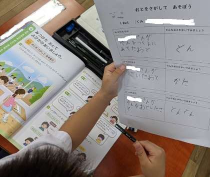 教科書の歌や校歌を少しずつ覚え、元気に歌っています。