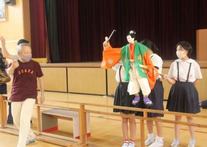 本校で、長年にわたり、子ども文楽の指導をしてくださっている人形遣いの桐竹勘十郎先生が、お父様に続いて、重要無形文化財保持者(人間国宝)に認定されることとなりました。