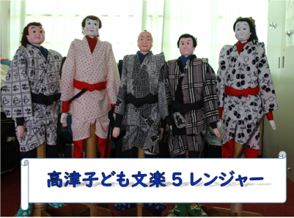 子どもたちの使っている人形はすべて、勘十郎先生のお手製です。文楽ゴレンジャーは昨年度の休校中に先生が練習用人形として作ってくださったものです。