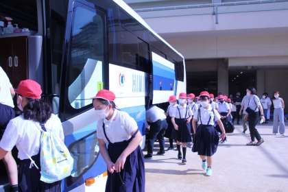 夏空の元、5・6年生が林間学習(ハチ高原)へ出発しました。