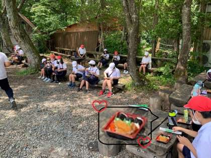 自然の中で食べるお弁当は、いつも以上においしいです。