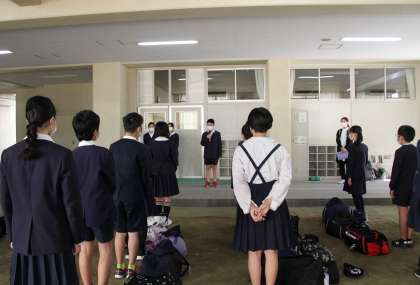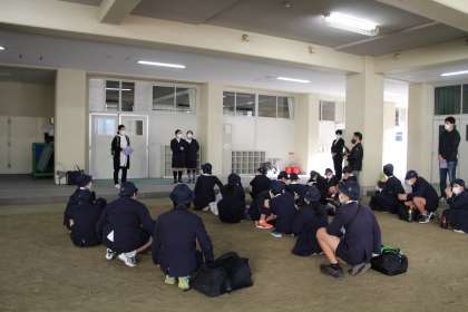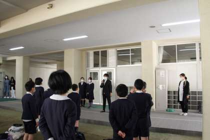 出発式では、気持ちを切り替えて、真剣な表情です。