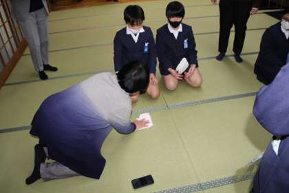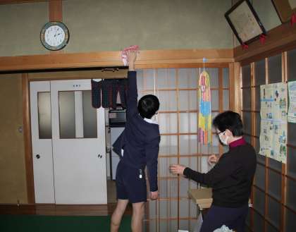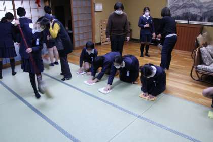 写真は、和室に掃除の仕方を教えていただいている様子です。