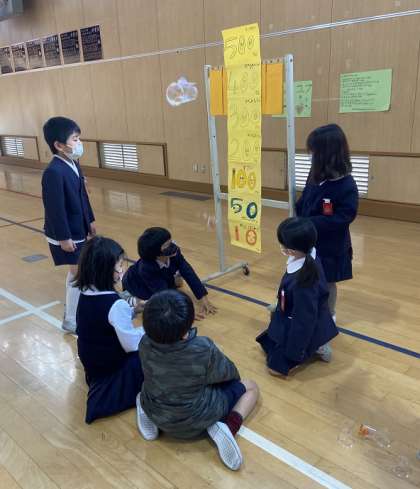 今日は待ちに待っていたおもちゃランド。2年生の子どもたちが、5種類のおもちゃを真心こめて準備して、1年生をお迎えしました。