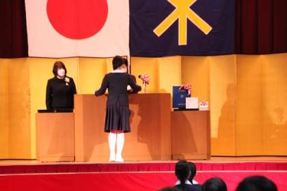 証書授与では、一人ひとりが自分の夢や目標を発表し、校長先生から卒業証書をいただきました。