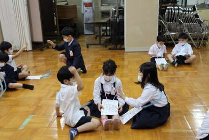 2年生が案内役になって、1年生とともに学校内の各教室を見て回りました。1年生は自分たちの教室以外を訪れる初めての機会でみんな興味津々でした。また、音楽室や家庭科室など、2年生も初めて行く教室があり、2年生にとっても新たな発見のある探検となりました。