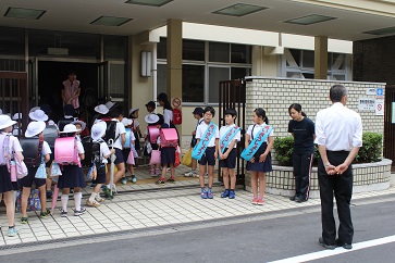 活動のめあては、「自分から、元気な声であいさつしよう!」です。