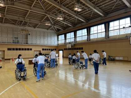 大阪市立心身障がい者リハビリテーションセンターの皆さんに来ていただき、「車いす体験学習」を行いました。