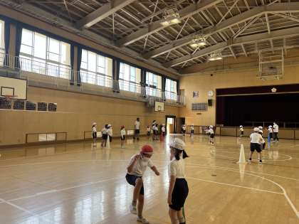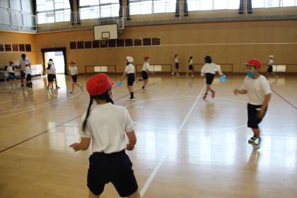 3・4年生が、区の体力向上支援事業の取り組みで体つくり運動をしました。