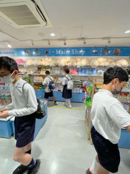午前10時より鳥羽水族館の見学が始まりました。まずはお土産を選ぶ班が多いようです。