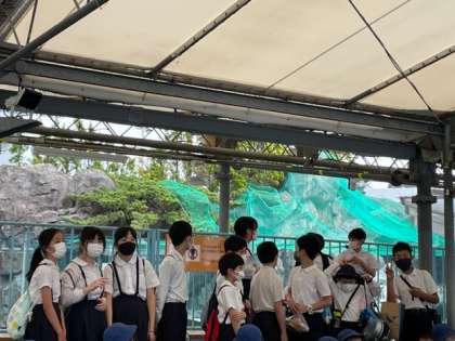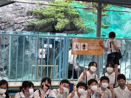 11時開始の「セイウチふれあいタイム」を待つ、6年生です。