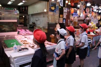 生活科「どきどき わくわく まちたんけん」の学習で、黒門市場へ見学に行きました。