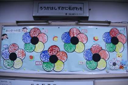 あいさつ週間にあわせて、「あいさつの花」の取り組みを行いました。「相手の目を見てできたか」「元気な声でできたか」など、自分自身のあいさつの仕方を振り返りました。気持ちの良いあいさつで、「あいさつの花」が満開です!