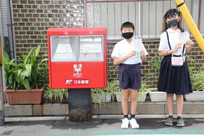 9月9日(金)5,6年生が書いた敬老はがきを、ポストに投函しました。1年生の時からお世話になっている豊寿会の方々へ、感謝の気持ちこめて書きました。